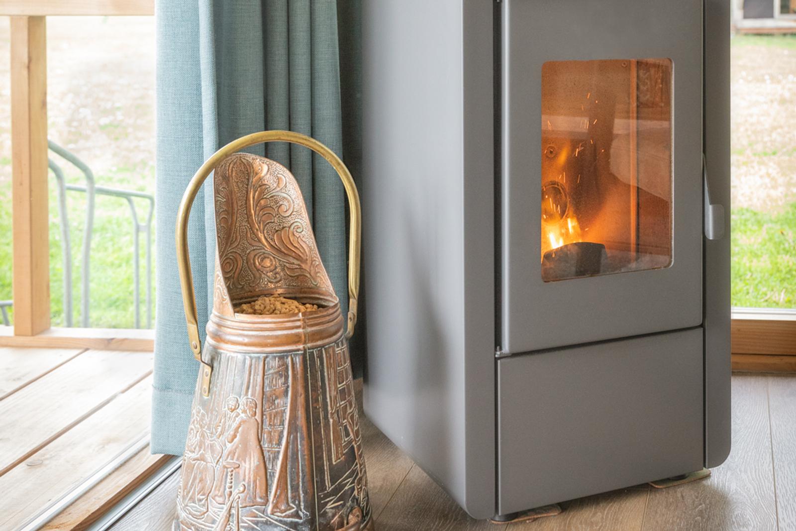 De welnesslodge heeft een heerlijke grote leefruimte en een groot buitenterras.
